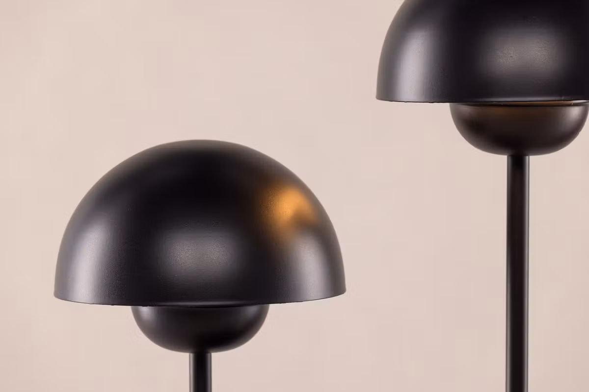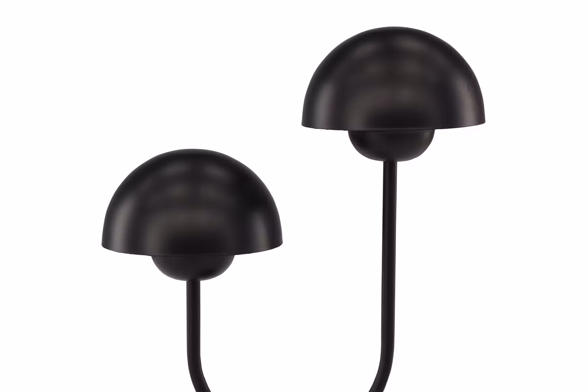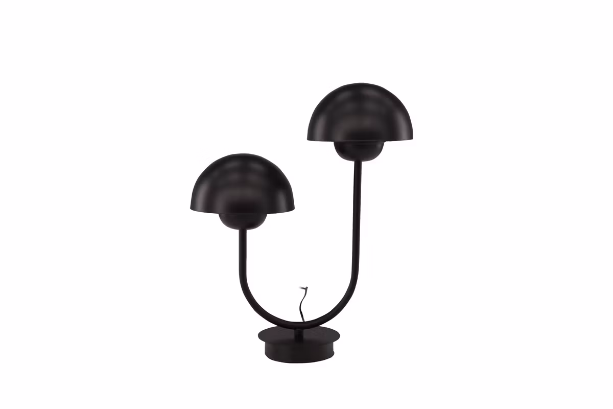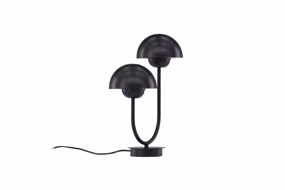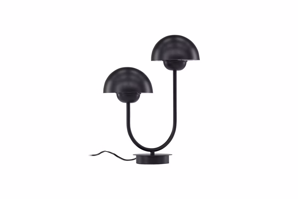Lyft stämningen i ditt hem med Lyckorna, en bordslampa som kombinerar stilren design med dekorativ karaktär. Lampan består av två mindre ljuskällor som elegant förenas av ett underrede i svart järn. De rundade lampskärmarna sprider ett behagligt och mjukt ljus som skapar en varm atmosfär i rummet.