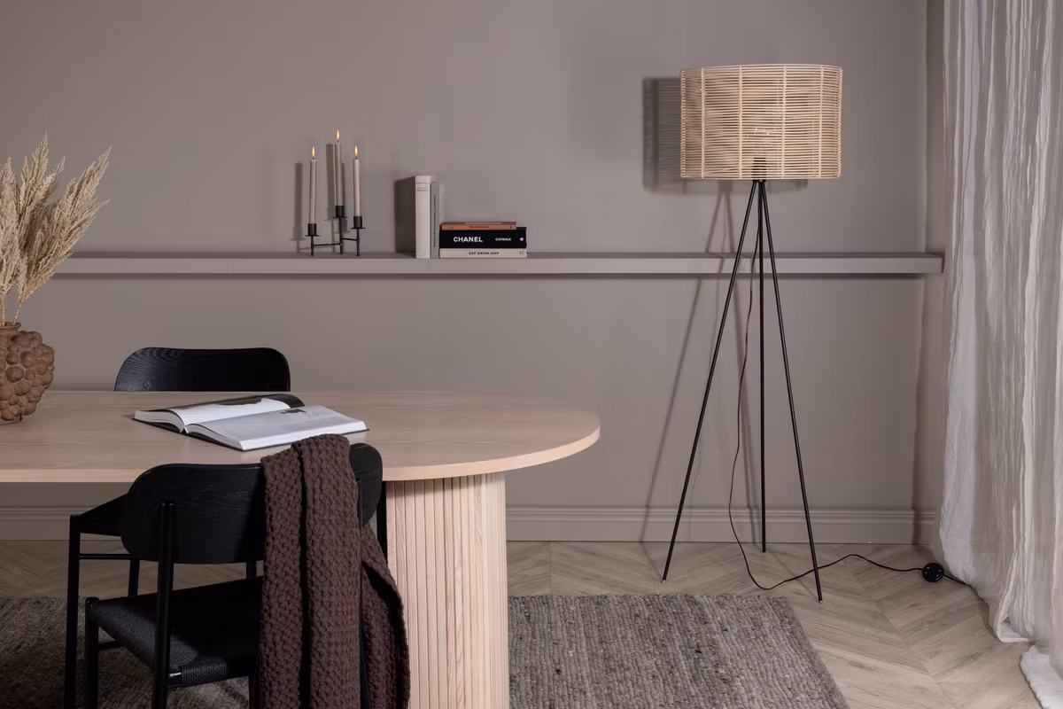 Ge ditt hem ett mjukt och vackert ljus med FENCE golvlampa. Tillverkad i rotting kombinerar den naturlig charm med modern och tidlös design, vilket gör den till en stilfull inredningsdetalj i både vardagsrum och sovrum.