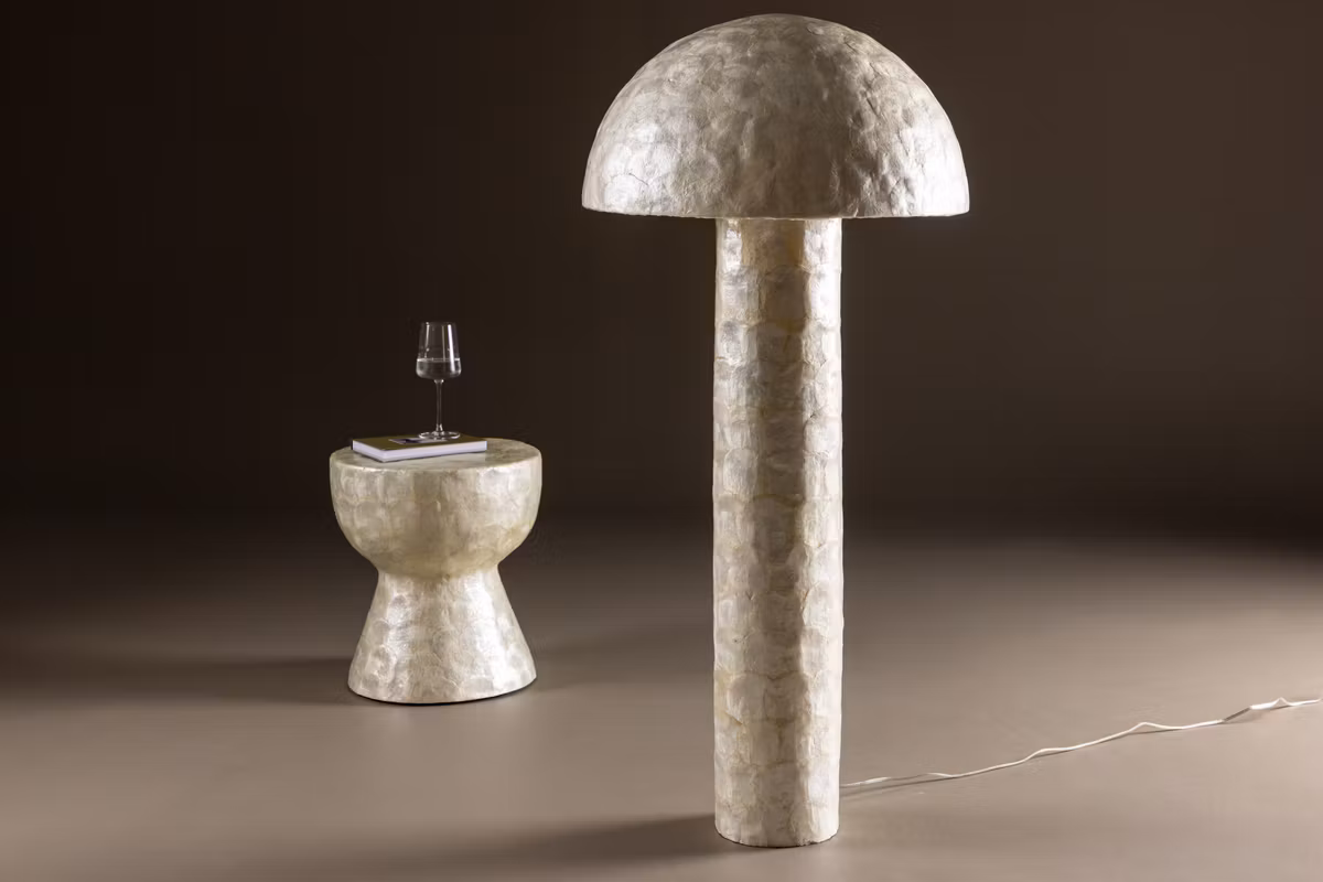 Uppgradera ditt hem med Lindön golvlampa, en elegant och iögonfallande belysningslösning som kombinerar funktion med exklusiv design. Tillverkad i det naturligt skimrande materialet Capiz ger lampan ett sofistikerat ljusspel och en mjuk, harmonisk atmosfär i rummet.