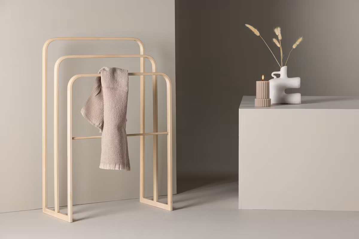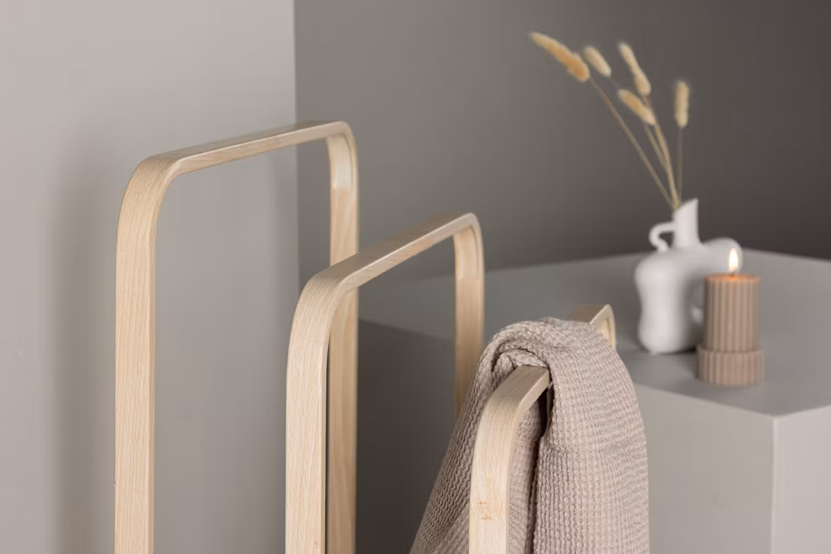 Med tre hängare i en och samma enhet erbjuder Drammen gott om plats för kläder, jackor, handdukar eller accessoarer – allt för att göra din vardag mer organiserad. Den robusta konstruktionen står stadigt på golvet och gör att du enkelt kan hålla ordning utan att kompromissa med stilen.