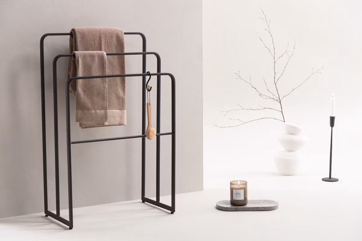 Med tre hängare i en och samma enhet erbjuder Drammen gott om plats för kläder, jackor, handdukar eller accessoarer – allt för att göra din vardag mer organiserad. Den robusta konstruktionen står stadigt på golvet och gör att du enkelt kan hålla ordning utan att kompromissa med stilen.