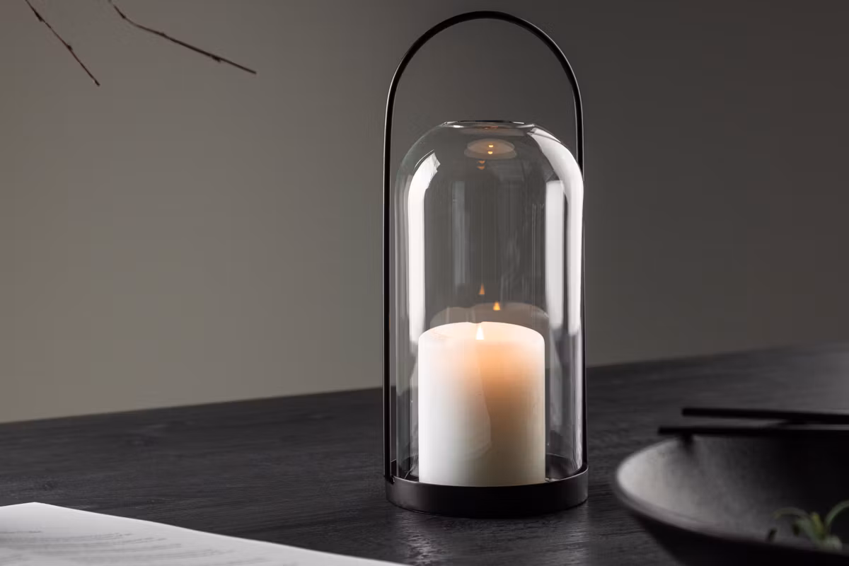 Placera Flora på matbordet, i fönstret eller på en hylla – där den inte bara lyser upp utan också blir en stilren inredningsdetalj. Den transparenta designen i kombination med det mörka metallen ger en modern, men samtidigt varm och inbjudande känsla.