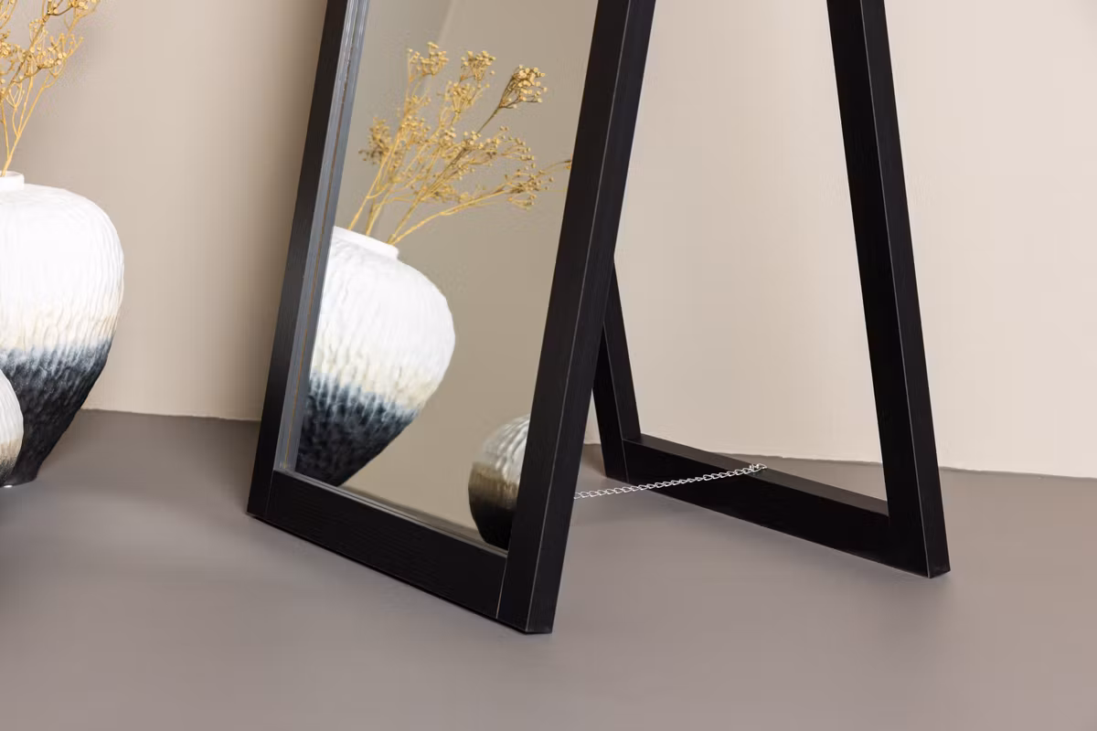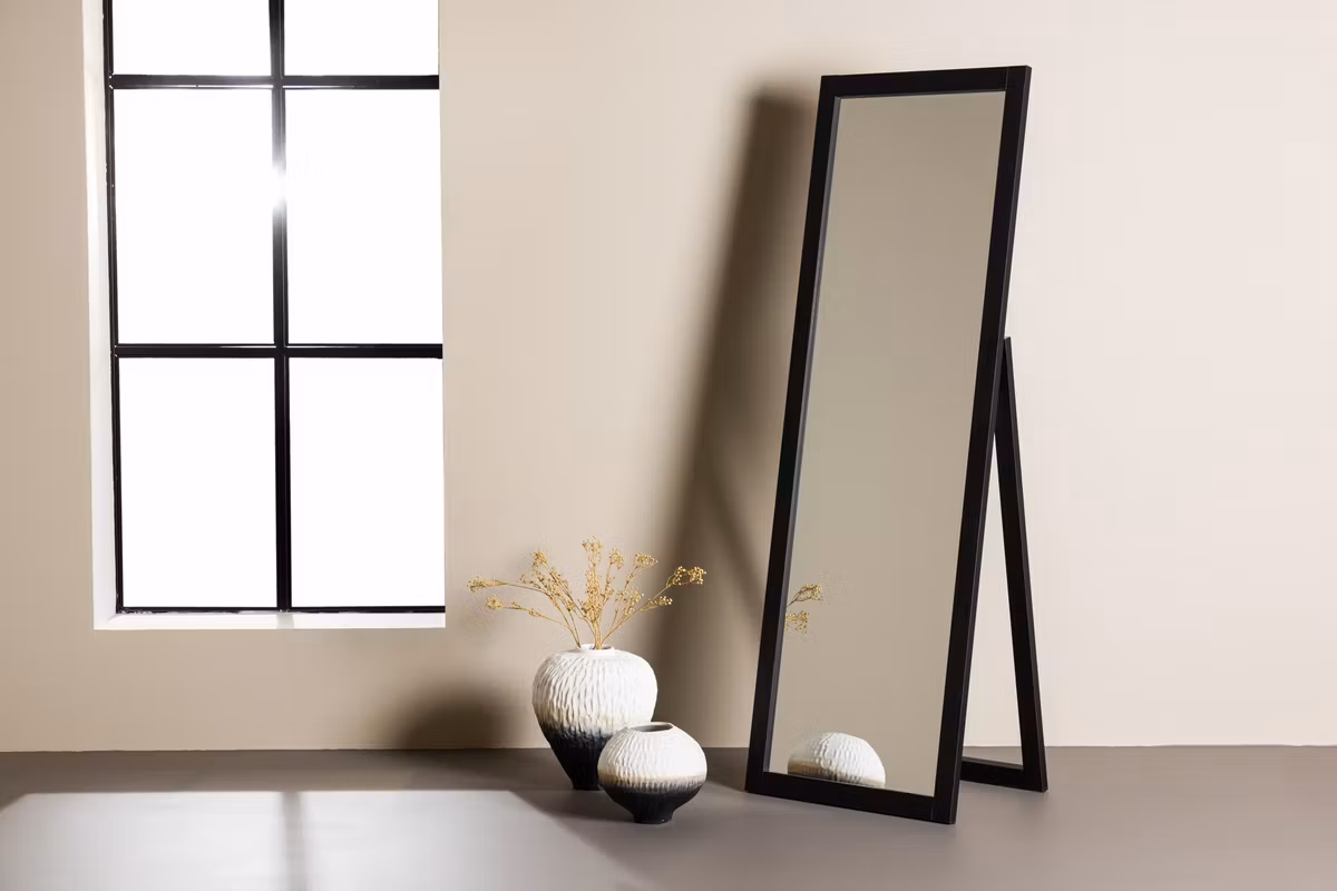 Den gedigna inramningen blir en stilfull detalj i sig och gör det enkelt att matcha med annan inredning. Oavsett om du väljer att hänga upp den eller luta den mot väggen bidrar Sebring till att reflektera ljus, förstora rummet och skapa en varm, inbjudande atmosfär.