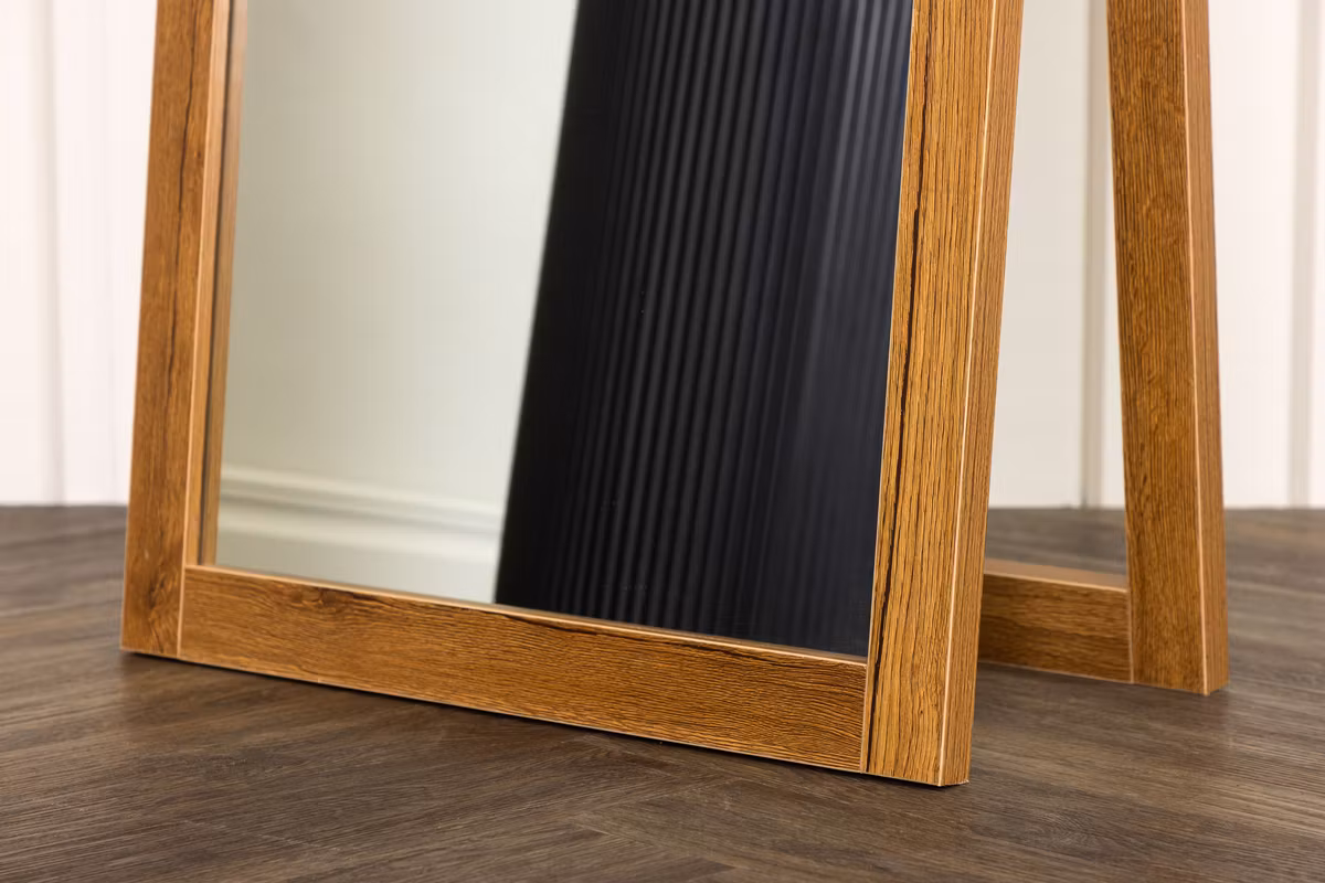 Den gedigna inramningen blir en stilfull detalj i sig och gör det enkelt att matcha med annan inredning. Oavsett om du väljer att hänga upp den eller luta den mot väggen bidrar Sebring till att reflektera ljus, förstora rummet och skapa en varm, inbjudande atmosfär.