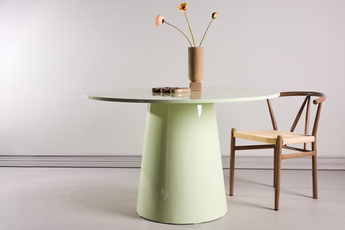 Ge ditt hem en modern touch med det eleganta Lanzo matbordet. Det runda bordet, med sin glansiga finish i trendig matcha grön, blir snabbt en naturlig samlingspunkt i rummet. Den stilrena designen kombinerar funktion och estetik på bästa sätt – perfekt för både vardag och fest.