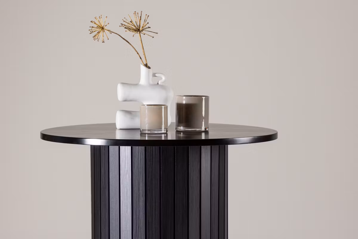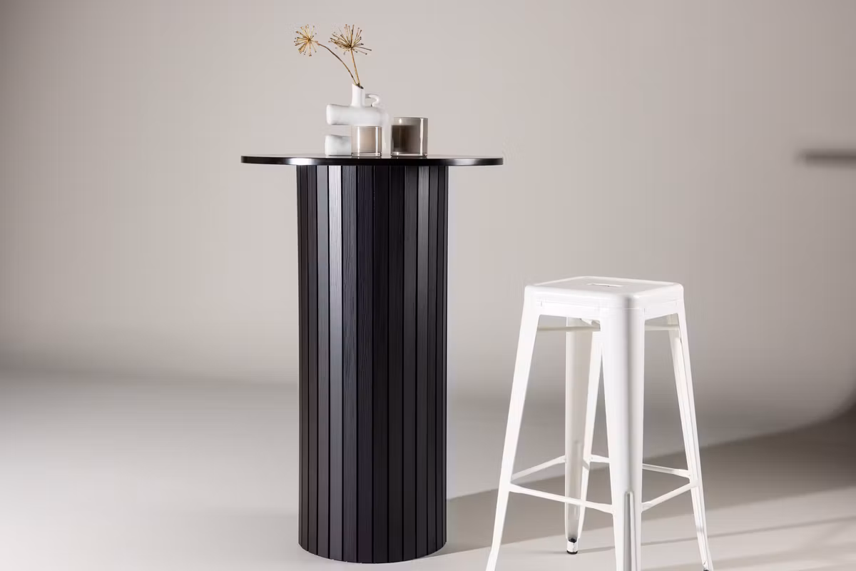 Härön är ett elegant och modernt barbord som tillför en sofistikerad känsla till din inredning. Den svarta bordsskivan i MDF kombineras med en stabil stomme i svart stål, vilket skapar ett stilrent och samtida uttryck. Med sin kompakta storlek, 70 cm i diameter och 105 cm i höjd, passar Härön perfekt även i mindre utrymmen samtidigt som det ger ett tydligt visuellt intryck. Den genomtänkta designen gör barbordet till en dekorativ inredningsdetalj som drar blickarna till sig. Använd det som en praktisk yta för servering eller som en elegant accent – Härön tillför modern elegans till hemmet.