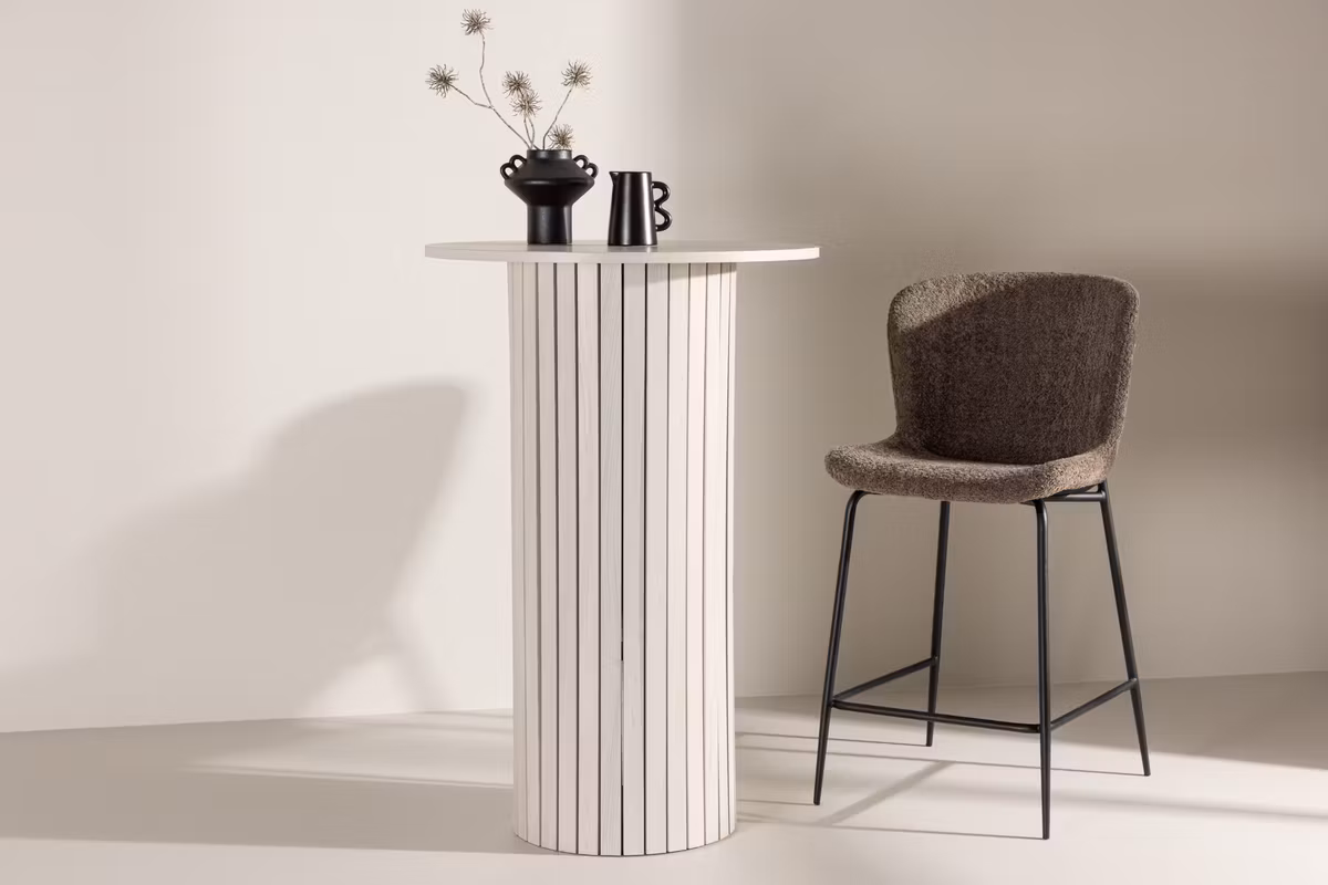 Härön – Stilrent barbord i vitputsad MDF och stål