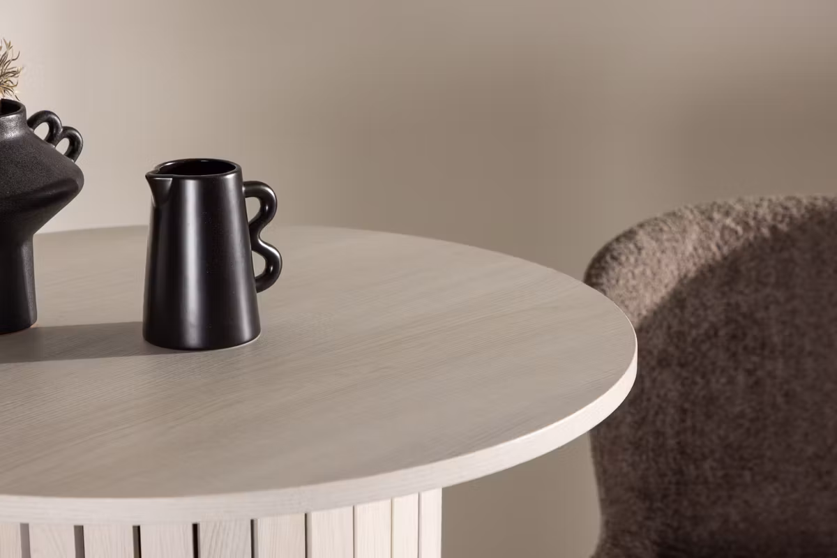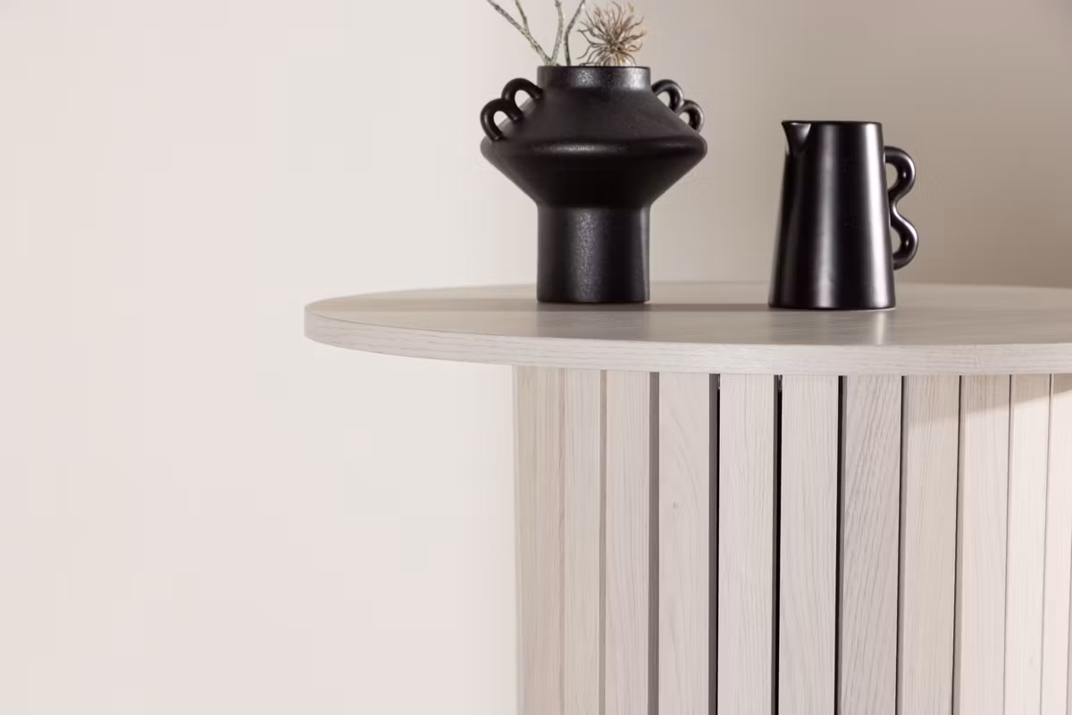 Härön är ett elegant och modernt barbord som tillför en sofistikerad känsla till din inredning. Den vitputsade bordsskivan i MDF kombineras med en stabil stomme i vitputsad stål, vilket skapar ett stilrent och samtida uttryck. Med sin kompakta storlek, 70 cm i diameter och 105 cm i höjd, passar Härön perfekt även i mindre utrymmen samtidigt som det ger ett tydligt visuellt intryck. Den genomtänkta designen gör barbordet till en dekorativ inredningsdetalj som drar blickarna till sig. Använd det som en praktisk yta för servering eller som en elegant accent – Härön tillför modern elegans till hemmet.