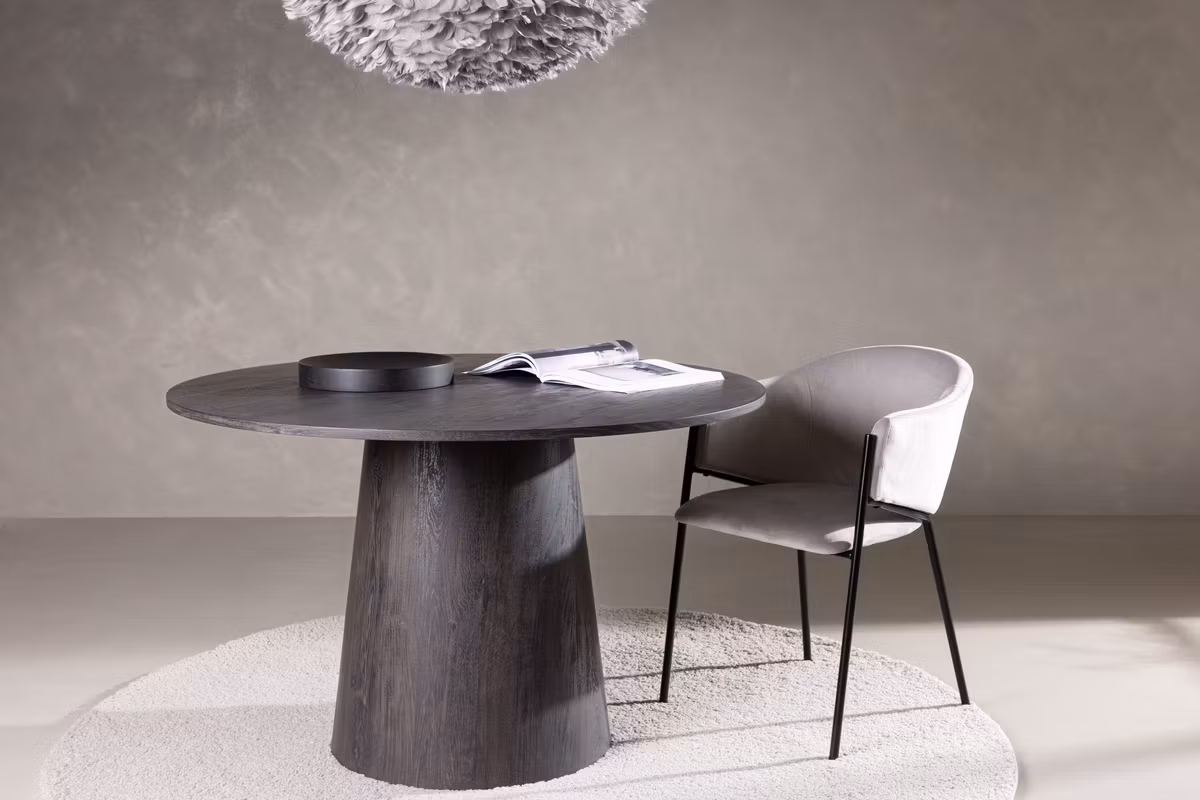 Ge din matplats en frisk och modern touch med matbordet Lanzo – ett runt bord som kombinerar stilren design med en tidlös mockafärgad finish. Med en diameter på 120 cm rymmer Lanzo både vardagsmiddagar och festliga tillställningar, och skapar en varm, inbjudande atmosfär i rummet.