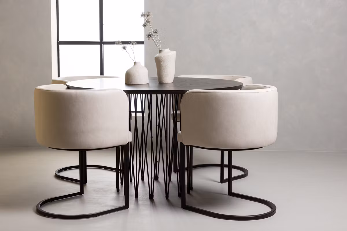 Elegant matgrupp med runt bord – Stone & Simrishamn