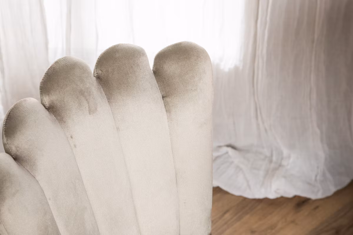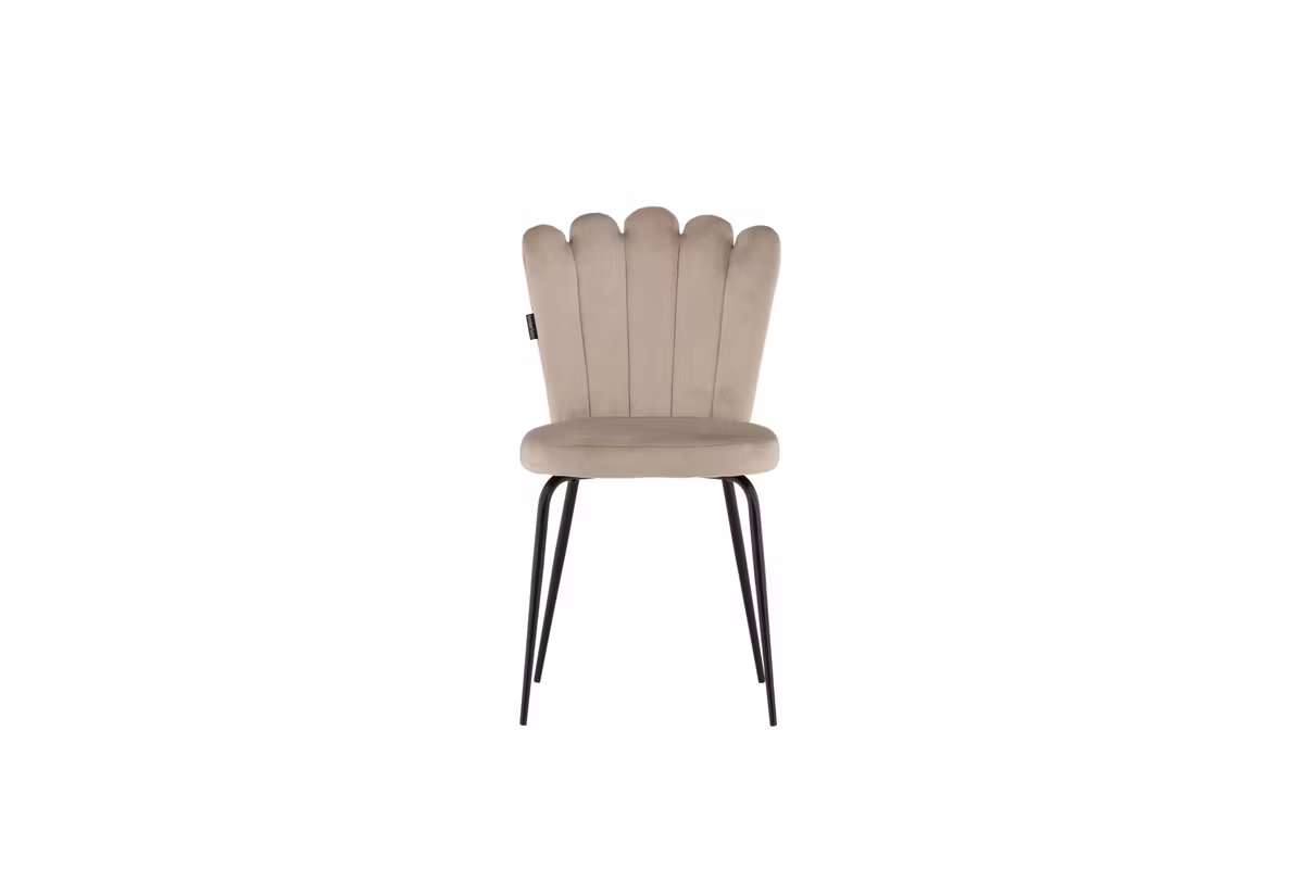 Lika stilren som tidlös – Limhamn matstol är ett säkert val för det moderna hemmet. Den eleganta, snäckformade ryggen med dekorativa sömmar ger stolen ett exklusivt uttryck, medan den runda sitsen i mjukt beige sammetstyg bjuder in till långa, bekväma stunder runt matbordet. De svarta pulverlackerade metallbenen skapar en snygg kontrast och ger en stabil känsla.