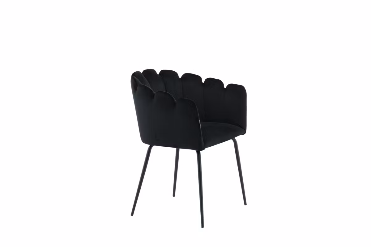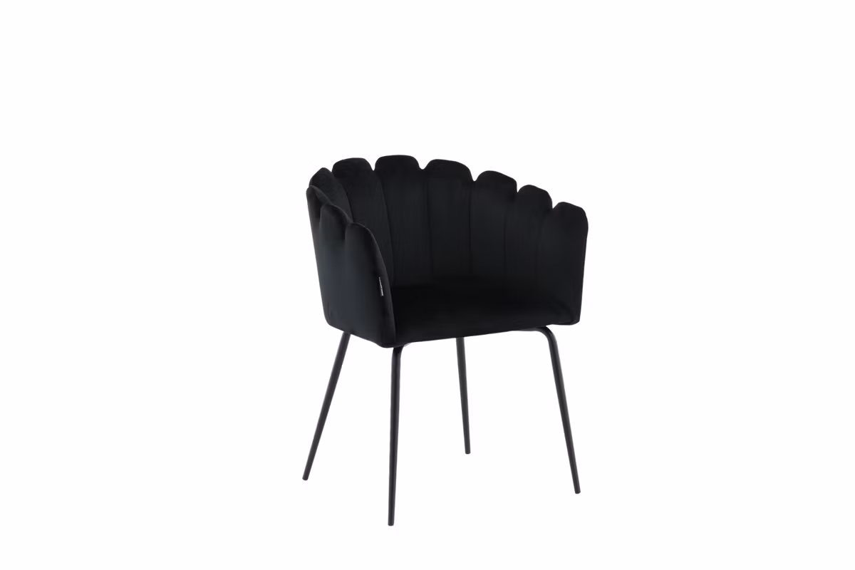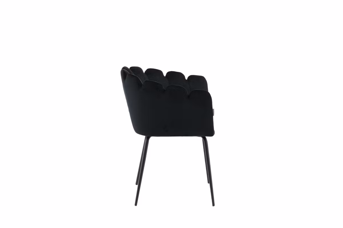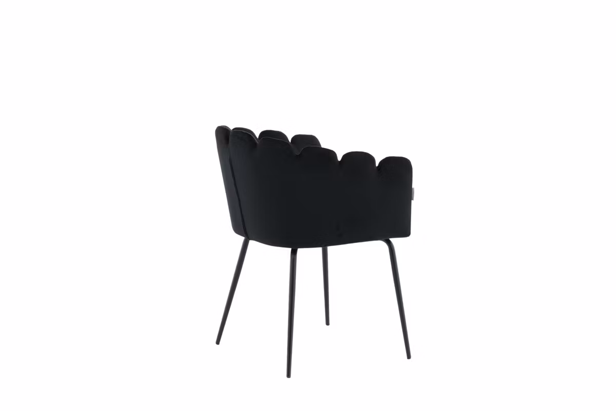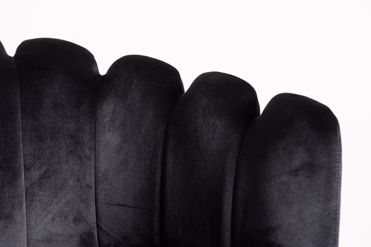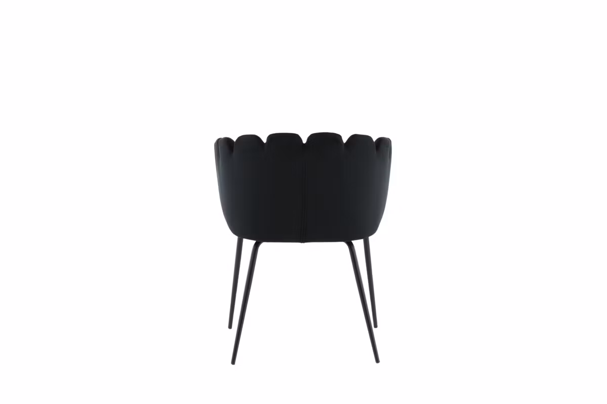 Limhamn matstol är en modern favorit som lyfter matplatsen med både stil och komfort. Den eleganta, snäckformade ryggen med dekorativa sömmar skapar ett mjukt och inbjudande uttryck, medan den rundade sitsen i smakfullt svart sammetstyg erbjuder hög sittkomfort – perfekt för långa middagar och trevliga stunder runt bordet.