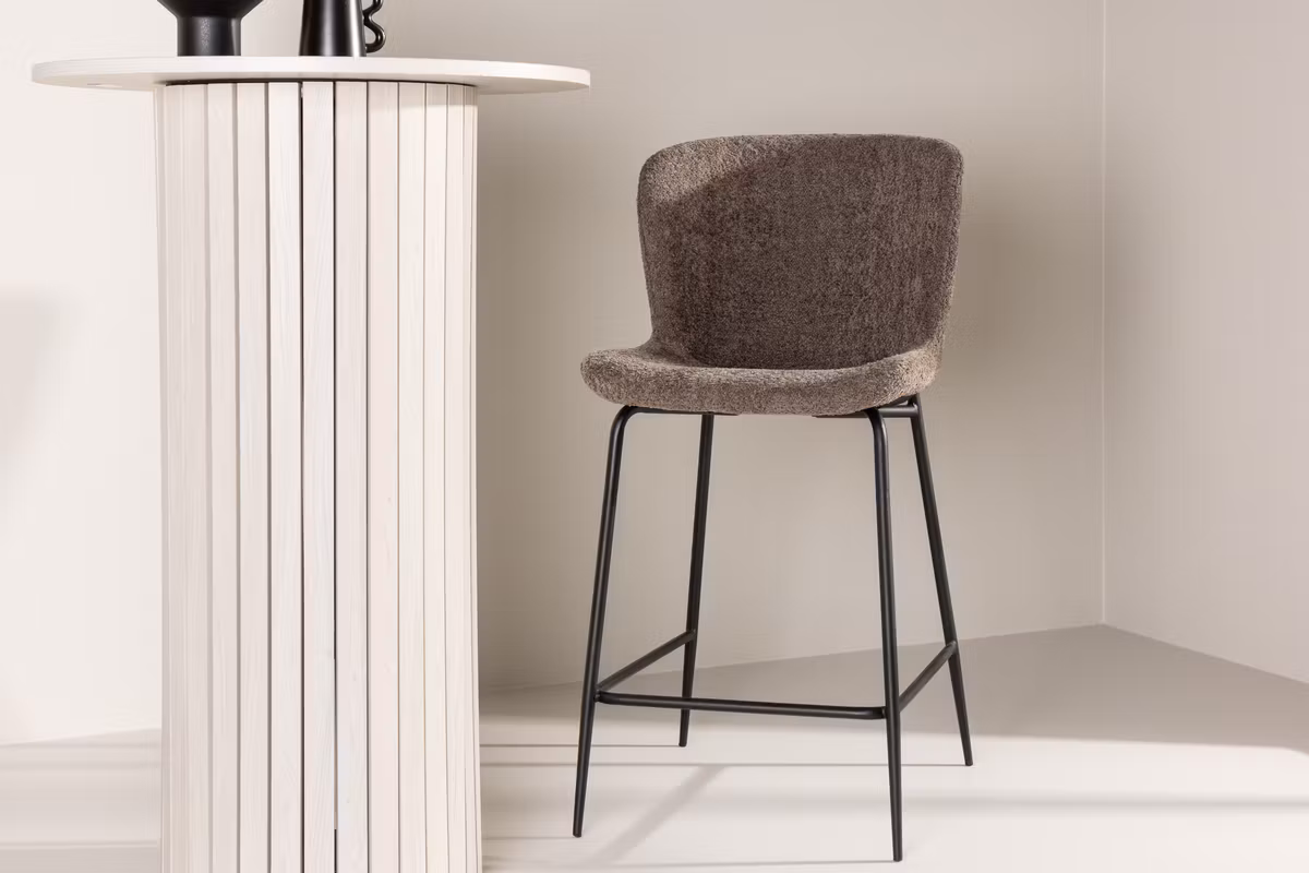 Modesto är en elegant barstol som kombinerar stilren design med hög komfort – perfekt för köksbänken eller köksön. Den bastanta konstruktionen ger ett stabilt intryck, medan sitsen i brun bouclé tillför en varm, inbjudande känsla med en touch av lyx. Det bekväma ryggstödet gör stolen idealisk för långa samtal, måltider eller avkopplande stunder. Benen i svart stål skapar en snygg kontrast till den bruna sitsen och bidrar till ett modernt och sofistikerat uttryck.