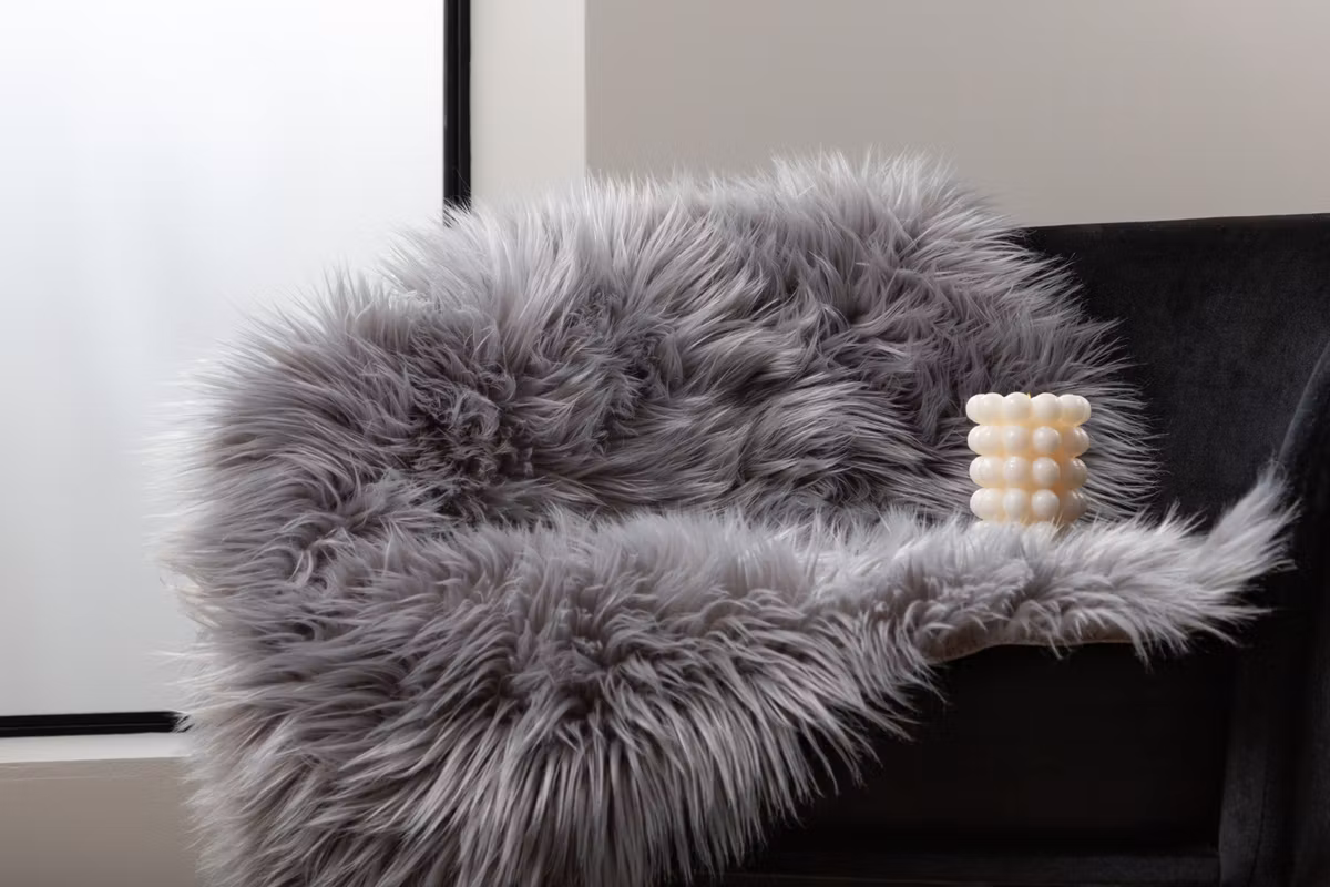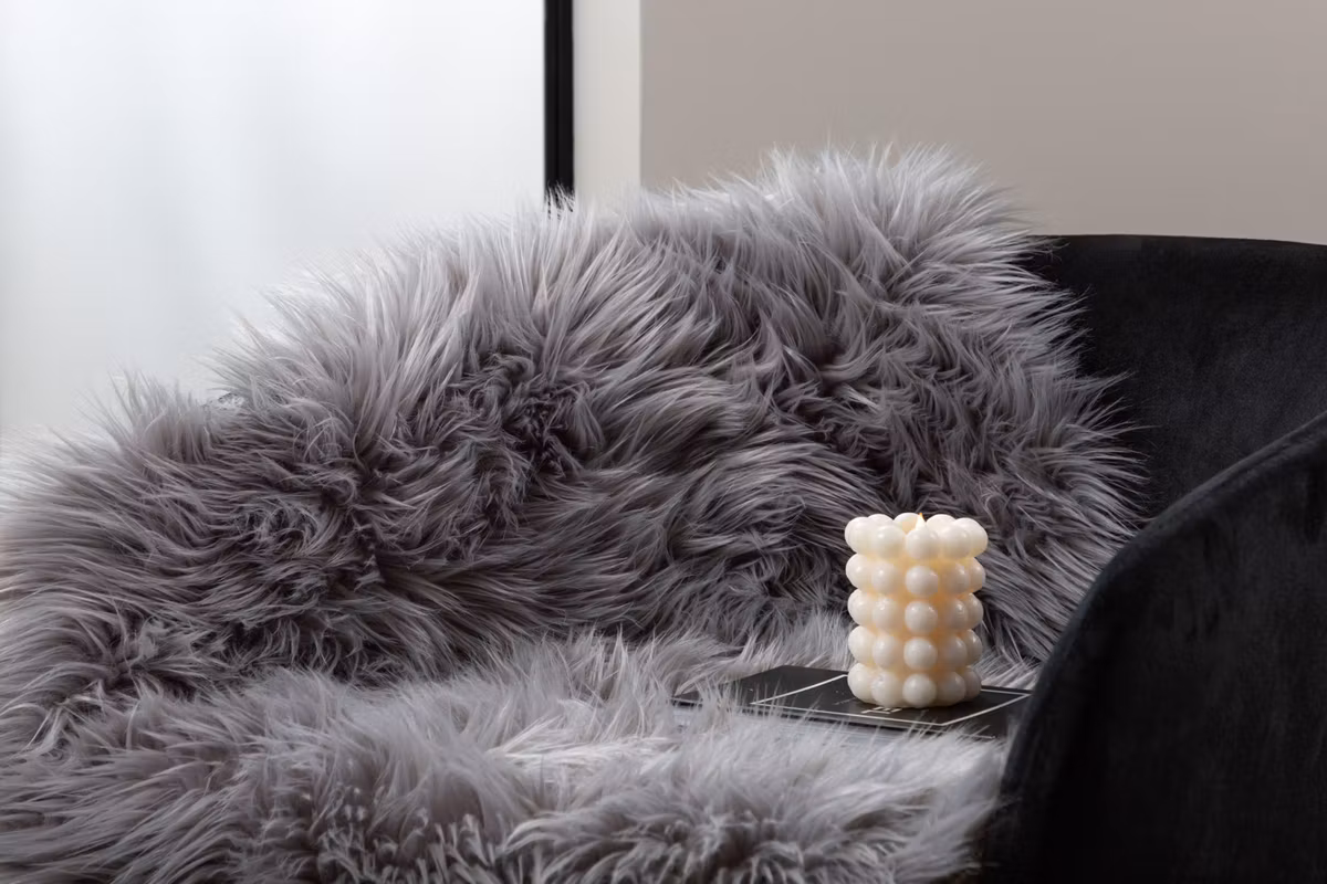 Skapa en varm och inbjudande känsla i ditt hem med denna konstfäll i fårskinnsimitation. Den grå färgen och det fluffiga, långhåriga materialet ger ett naturligt och ombonat uttryck som passar lika bra i soffan, bredvid sängen, i barnvagnen eller på uteplatsen.