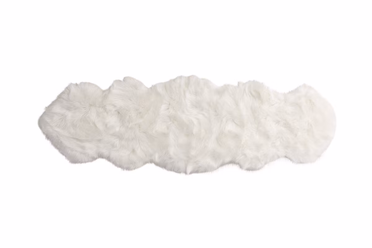 Skapa en ombonad och naturlig känsla i ditt hem med denna vackra vita fäll i mjuk akryl. Med sina generösa mått på 180x55 cm passar den perfekt som en gångmatta i hallen, en dekorativ detalj på sängen eller som en skön dyna på en bänk.