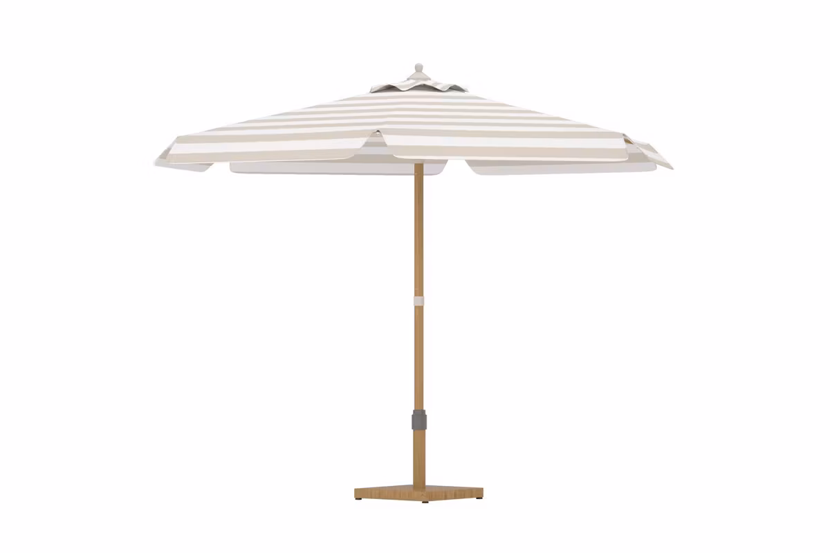Skapa en livfull och inbjudande uteplats med Cerox – ett parasoll som kombinerar funktion med lekfull design. Det randiga tyget i beige och vitt ger en fräsch känsla som direkt lyfter atmosfären, oavsett om du placerar det på balkongen, vid poolen eller i trädgården.