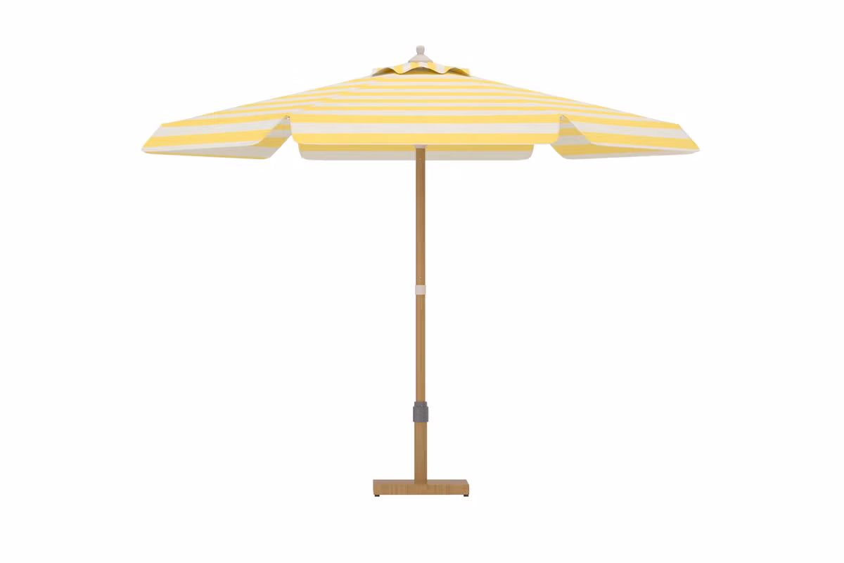 Skapa en livfull och inbjudande uteplats med Cerox – ett parasoll som kombinerar funktion med lekfull design. Det randiga tyget i gult och vitt ger en solig och fräsch känsla som direkt lyfter atmosfären, oavsett om du placerar det på balkongen, vid poolen eller i trädgården.