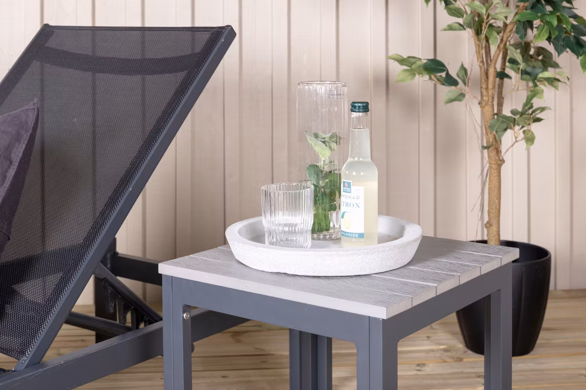 Den justerbara ryggdelen gör det enkelt att hitta din perfekta position, oavsett om du vill luta dig tillbaka och koppla av eller sitta upp och njuta av en bok eller något svalkande att dricka. Den stilrena, minimalistiska designen gör att solsängen passar lika fint vid poolen som på altanen eller i trädgården.