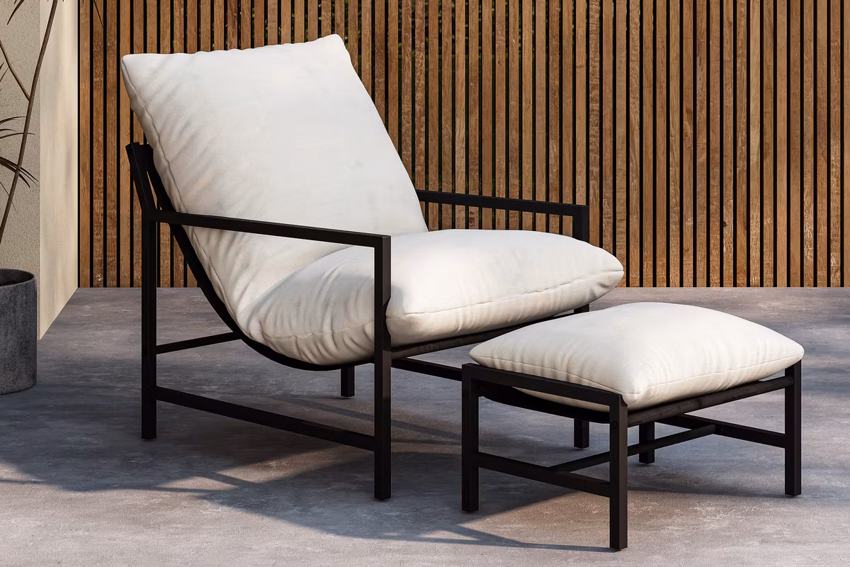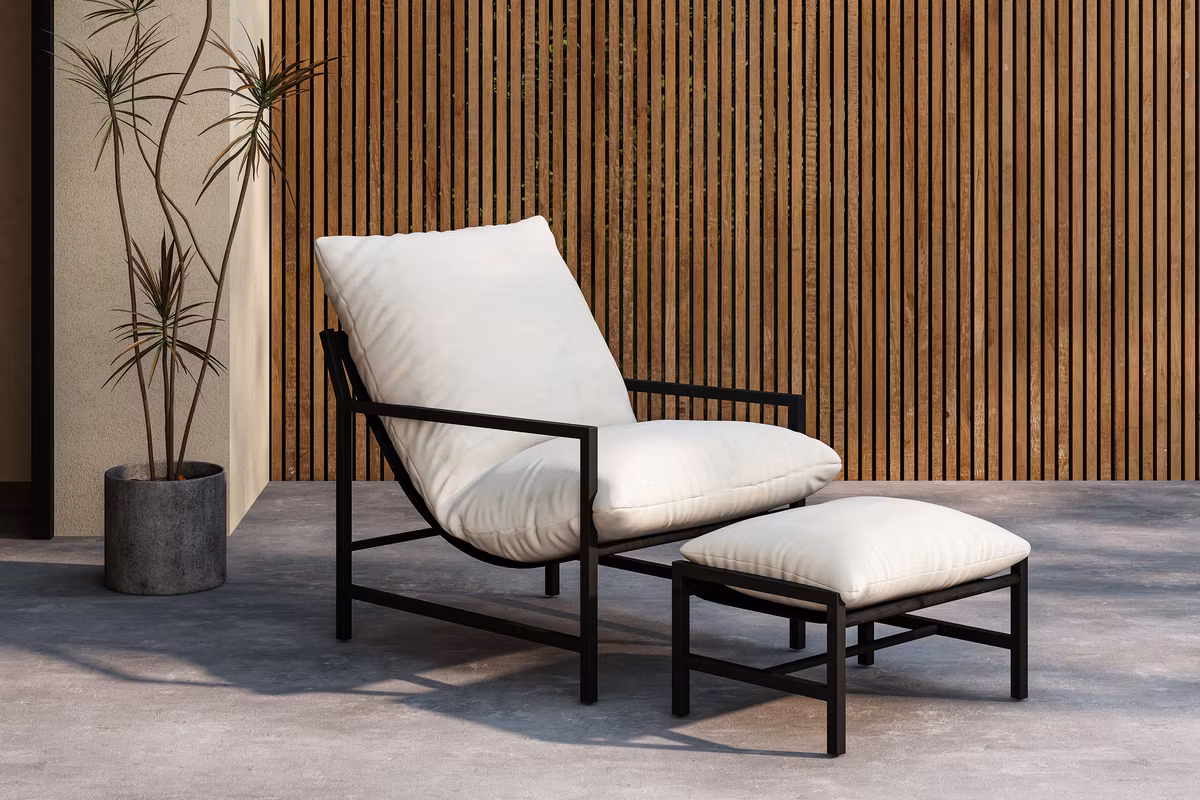 Den eleganta beige färgtonen ger ett harmoniskt och modernt uttryck som smälter in i alla typer av utomhusmiljöer. Med den matchande fotpallen kan du luta dig tillbaka och verkligen njuta av lugnet – oavsett om det är en solig eftermiddag eller en stilla kväll.