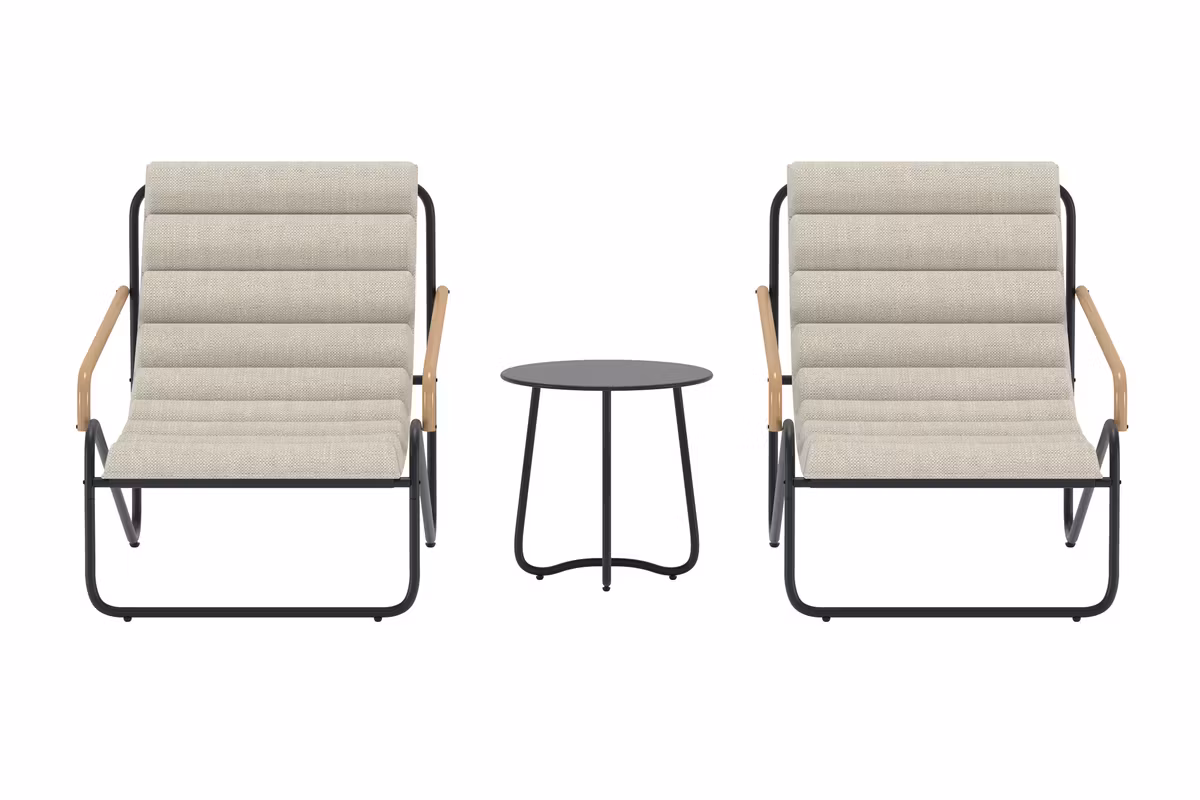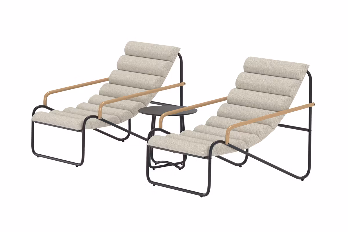 De bekväma loungestolarna är designade för total avkoppling och kompletteras med ett praktiskt sidobord – perfekt för kaffe, svalkande drycker eller små detaljer som förhöjer stämningen. Här får du en genomtänkt helhet där både stil och funktion står i fokus.