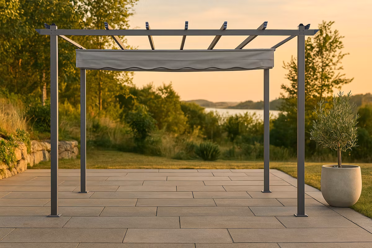 Drömmer du om en ny favoritplats utomhus? Med Lazio pergola ramar du enkelt in uteplatsen och skapar en stilfull och personlig miljö att njuta av hela sommaren. Den moderna konstruktionen i aluminium ger ett stabilt och elegant uttryck, medan taket i slitstark polyester erbjuder behagligt skydd mot solens strålar.