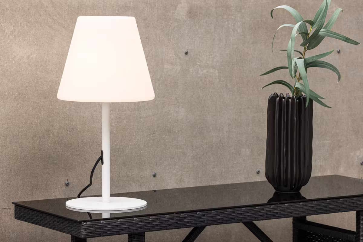 Skapa en varm och inbjudande atmosfär utomhus med Moris – en stilren bordslampa som kombinerar modern design med praktisk funktion. Tillverkad i plast och stål erbjuder den både hållbarhet och ett tidlöst uttryck i vitt som passar perfekt på uteplatsen, balkongen eller i trädgården.