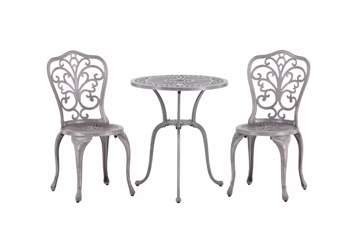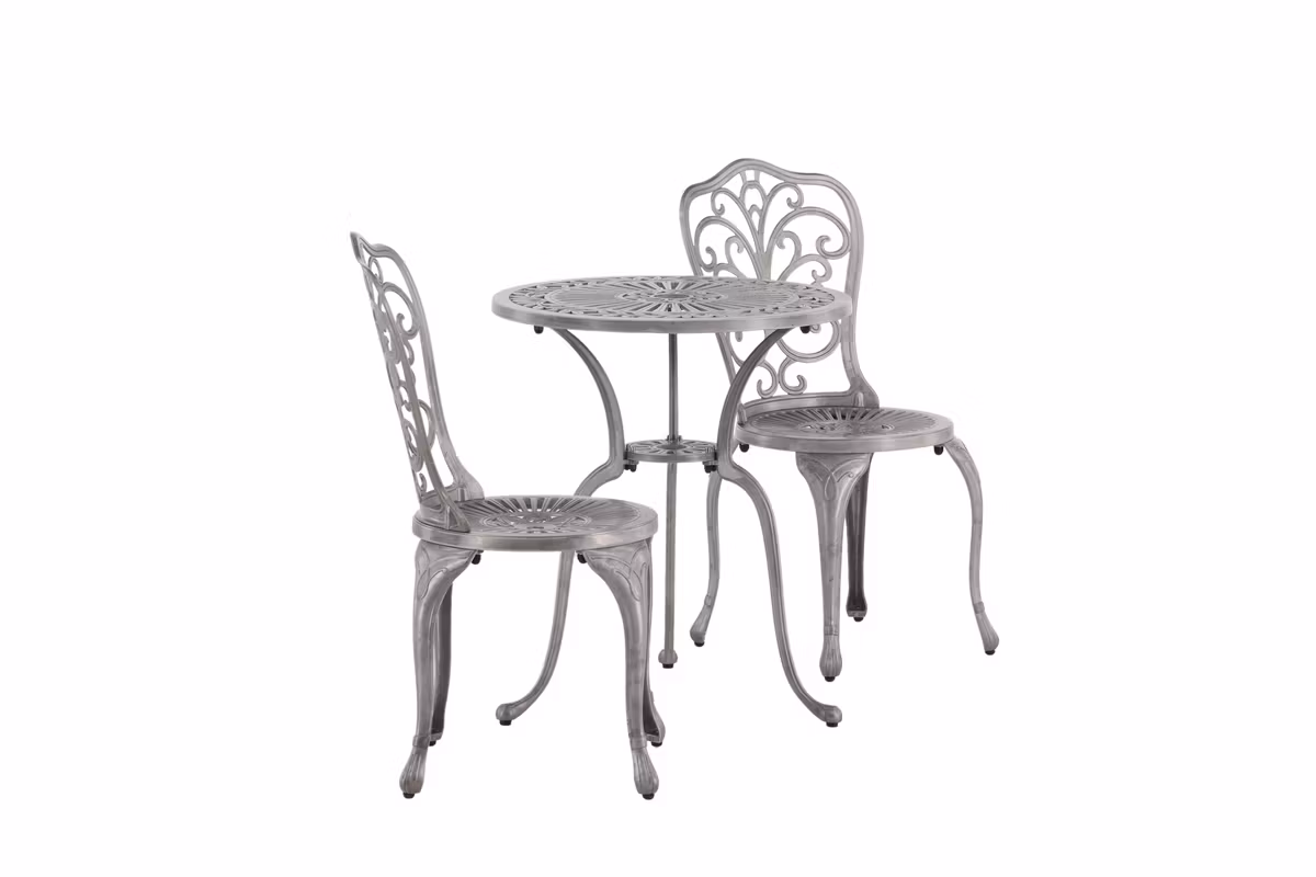 Förvandla din trädgård eller uteplats till en charmig och inbjudande oas med Nandin cafésset. Tillverkat i aluminium kombinerar det en modern, stilren design med praktisk funktion – perfekt för både morgonkaffet och långa, avkopplande stunder utomhus.