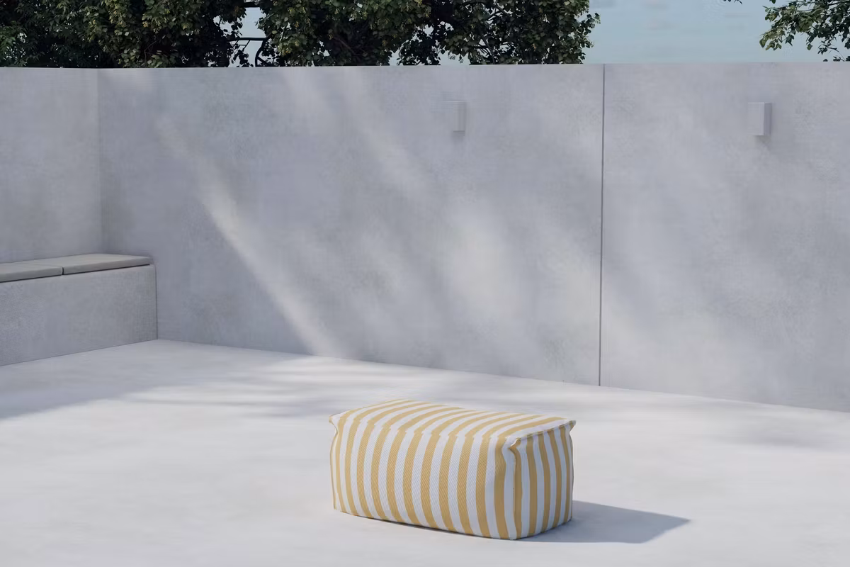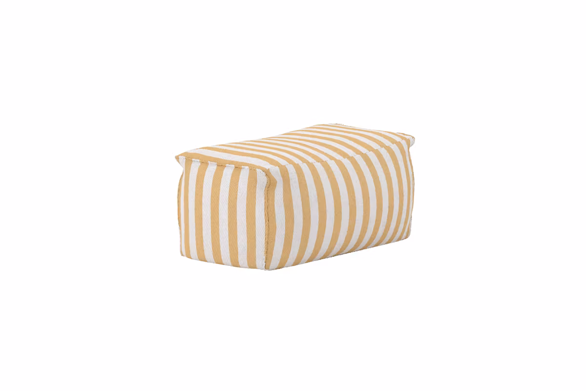 Redang är ottomanen som kombinerar hög komfort med ett uttrycksfullt formspråk. Det randiga tyget i fräscht gult skapar en livfull och modern känsla som lyfter allt från vardagsrum till uteplats och loungehörna.