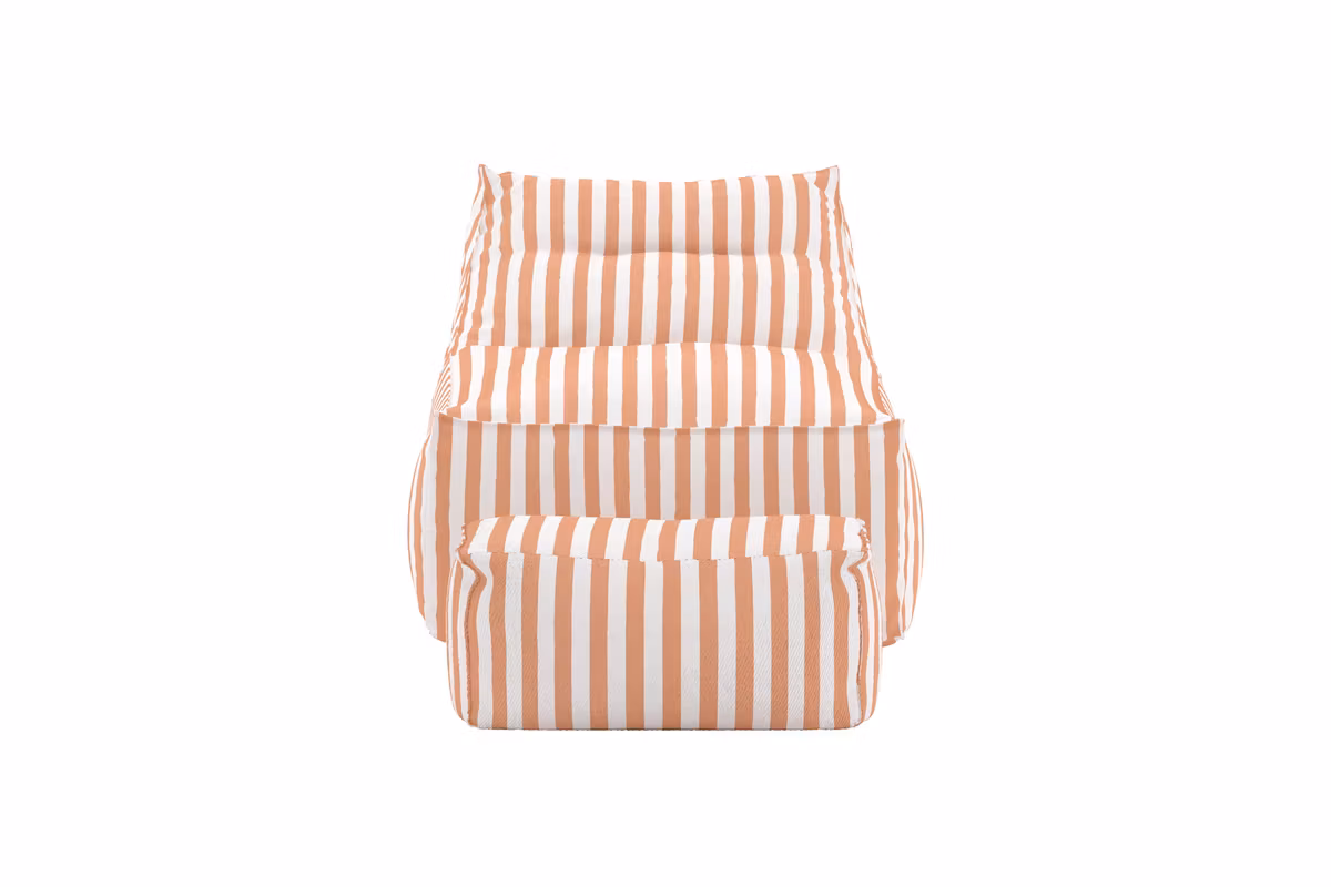 Relaxbagen formar sig mjukt efter kroppen och ger en bekväm sittupplevelse – perfekt när du vill läsa, sola eller bara koppla av. Den matchande ottomanen ger skönt stöd för benen eller fungerar som en praktisk extra pall när du behöver det.