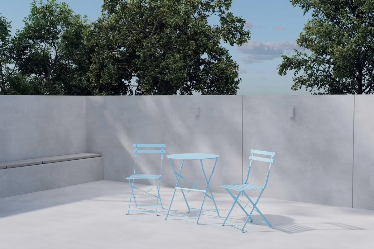 Skapa en inbjudande och livfull oas på din uteplats eller balkong med Tao cafésätt i en härligt ljusblå nyans. Setet består av ett runt bord och två klassiska caféstolar med en stilren och smidig design som passar lika bra i små som stora utrymmen. Den soliga färgen tillför energi och sommarkänsla, samtidigt som den lyfter hela miljön med en fräsch och modern touch.