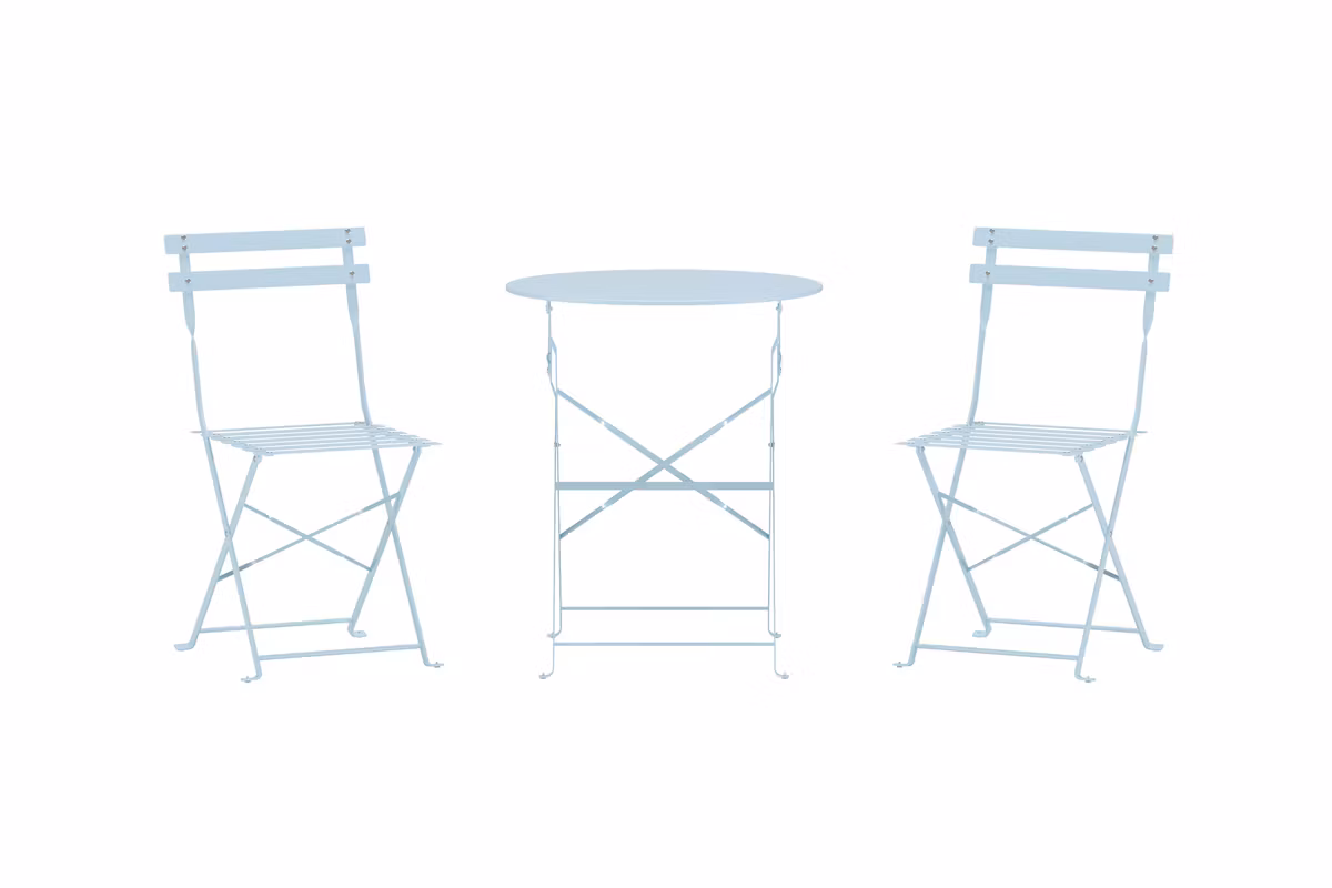 Både bordet och stolarna är praktiskt hopfällbara, vilket gör dem enkla att flytta och smidiga att förvara när de inte används. Perfekt för dig som vill kombinera funktion med stil – oavsett om det är för morgonkaffet, en avslappnad frukost eller en lugn stund i solen.