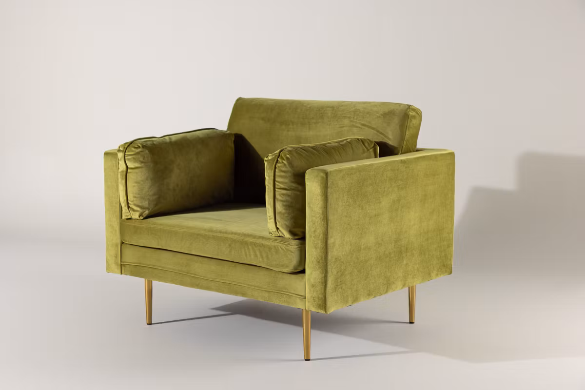 Låt ditt vardagsrum få den uppmärksamhet det förtjänar med fåtöljen Boom i en djup, läcker grön kulör. Det här är mer än bara en sittplats – det är en stilikon som sätter tonen för hela rummet.