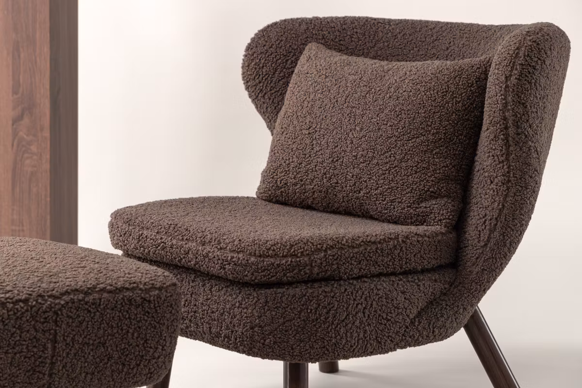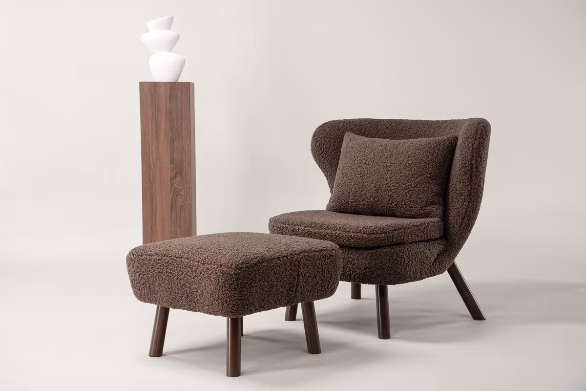 Ryxö Teddyfåtölj med fotpall – mjuk komfort i trendig design