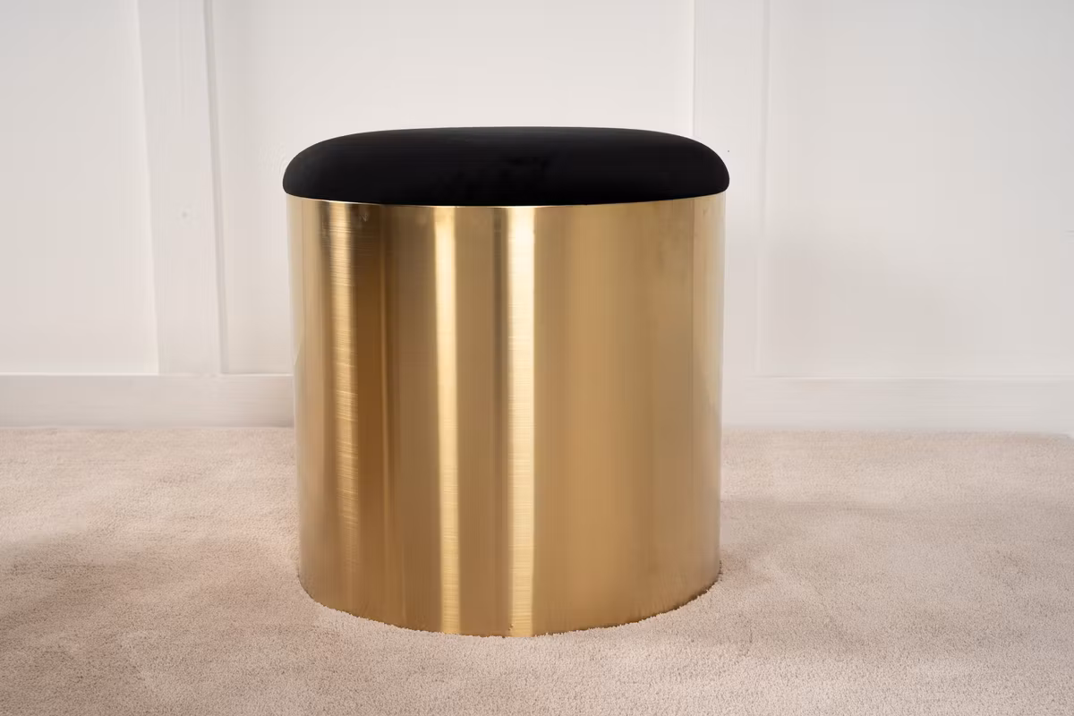 Den stabila metallbasen i guldton adderar en modern och elegant detalj samtidigt som den ger god hållbarhet. Tack vare sin nätta storlek och låga vikt är sittpuffen enkel att flytta runt och lätt att placera i hemmets alla rum.