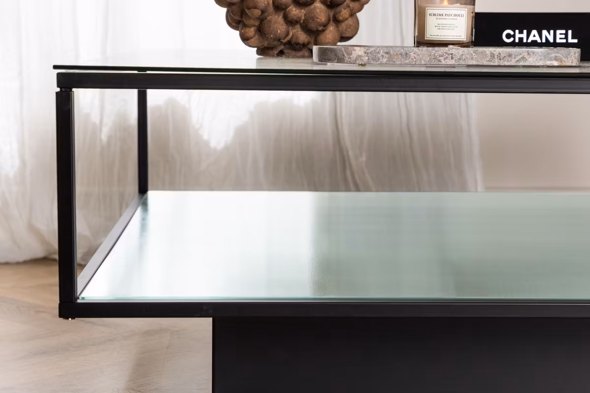Soffbordet Maglehem bjuder på en iögonfallande och modern design som ger rummet karaktär. Det robusta underredet i svart metall skapar en stabil och exklusiv känsla, medan de stilrena glasskivorna ger ett elegant och luftigt uttryck.