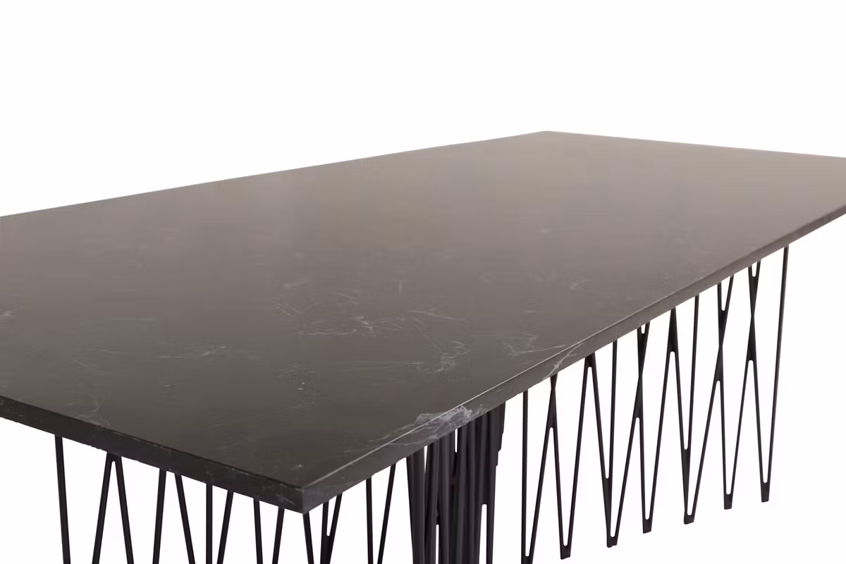 Soffbordet Stone är helt rätt i tiden och ger vardagsrummet en lyxig och stilfull känsla. Den svart mönstrade bordsskivan i artificiell sten skapar ett exklusivt uttryck, medan det dekorativa underredet i svart metall imponerar med sin unika och moderna form.